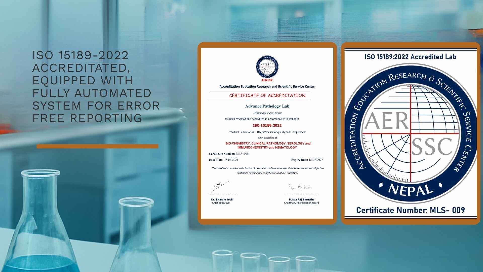 Welcome to Advanced Pathology Lab, the first ISO certified diagnostic centre located in Birtamode, Jhapa, Koshi Pradesh of Nepal. Since our inception in 2067 (2010 A.D.), we have been at the forefront of providing accurate, reliable and timely inspection services, earning the trust of more than 10,000 satisfied customers.